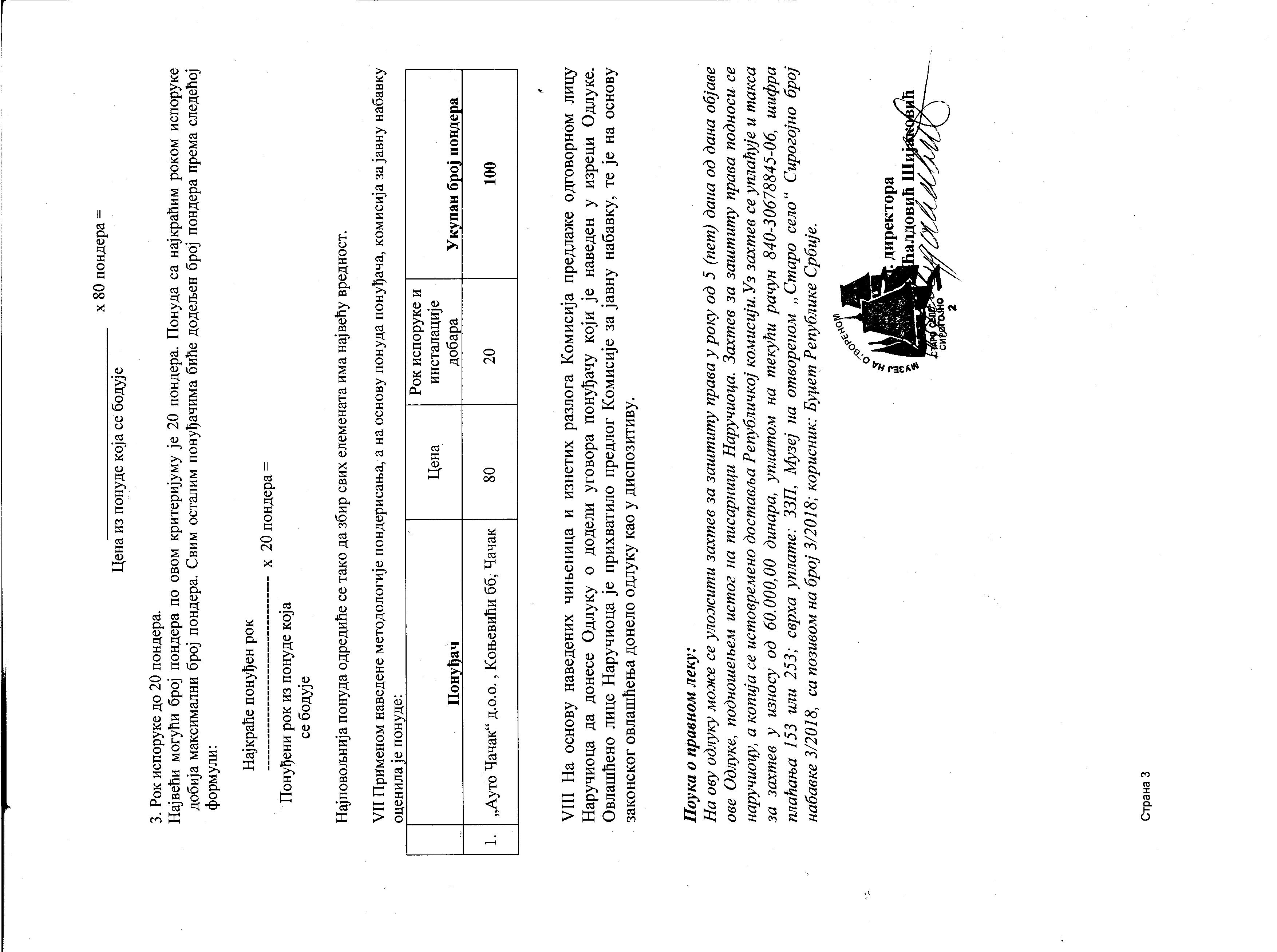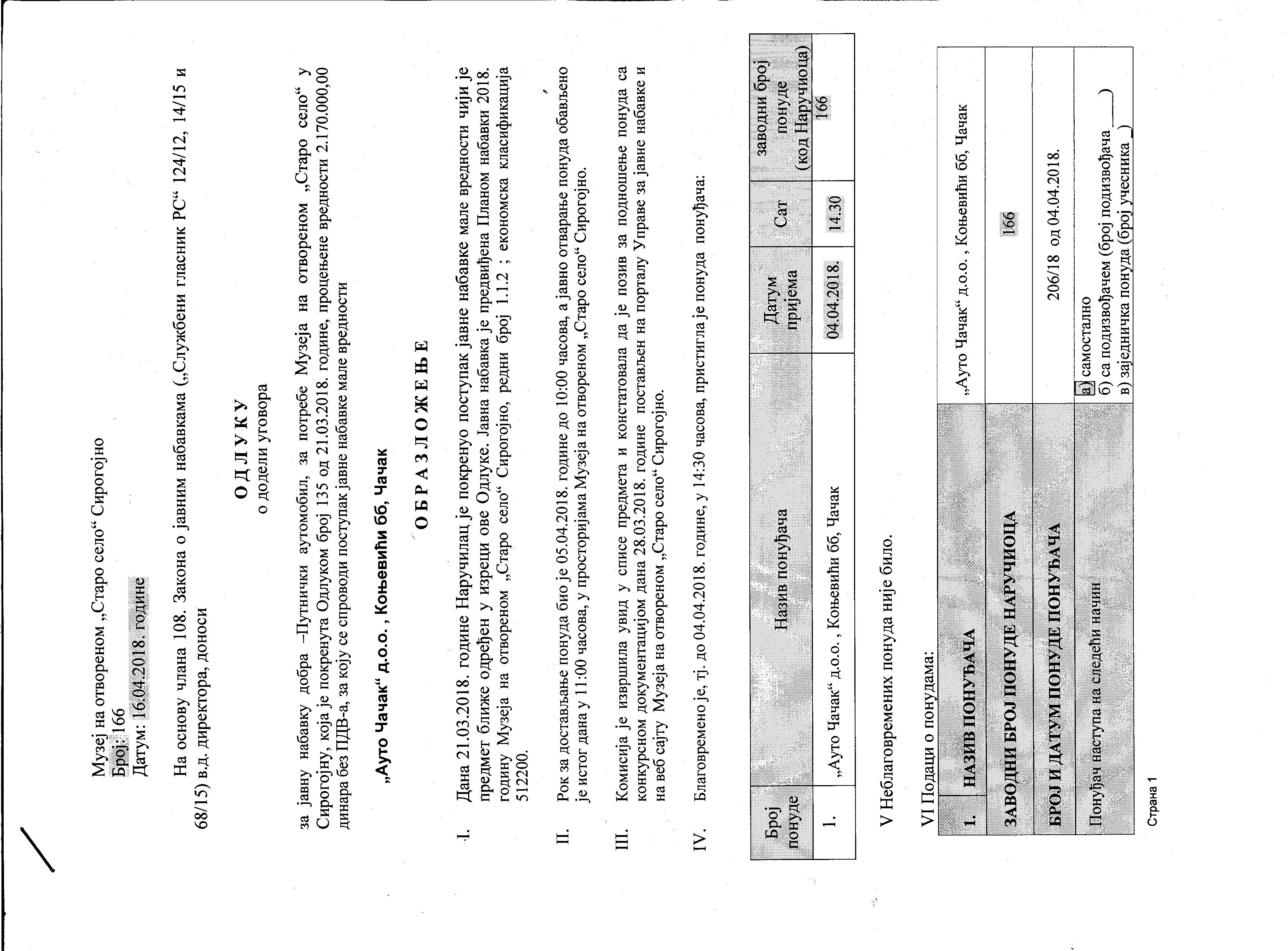 Одлука о додели Уговора ЈНМВ бр 3/2018 - набавка путничког аутомобила Јавне набавке |