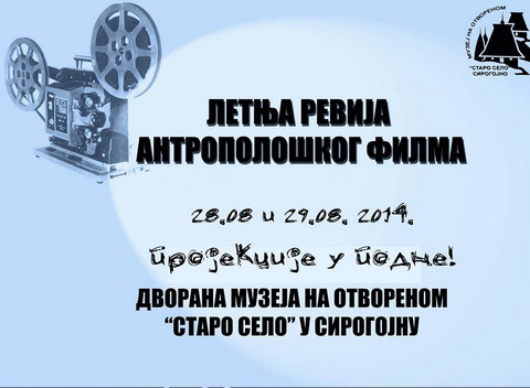 In the Hall of the Open air museum “Old Village” in Sirogojno, the seventh Summer Anthropological Film Revue will be held. The programme includes documentary, ethnological and anthropological films from the last year's International Ethnographic Film Festival (Kosma by Sonja Blagojević and Teški hor by Dragan Nikolić) and an author film Mi i o(p)stale ptice by Srdjan Đuranović from Novi Sad.