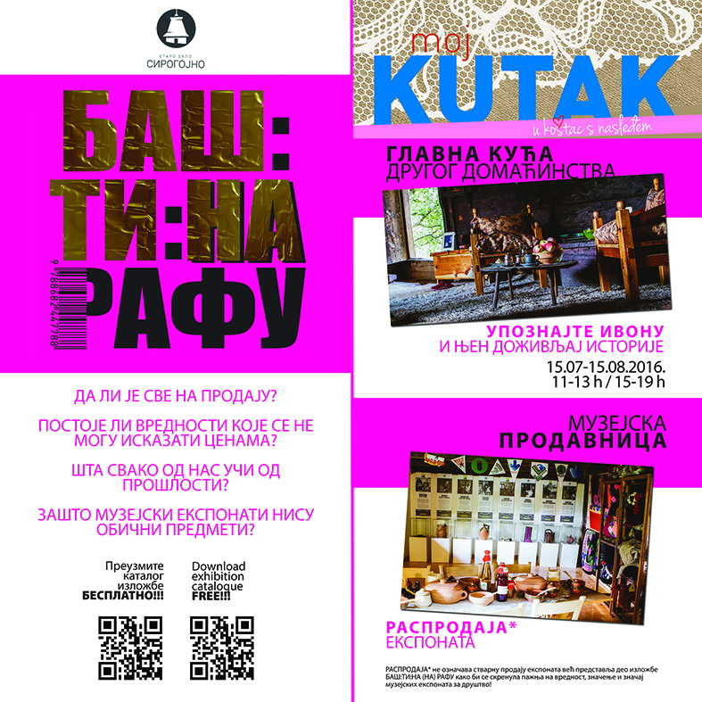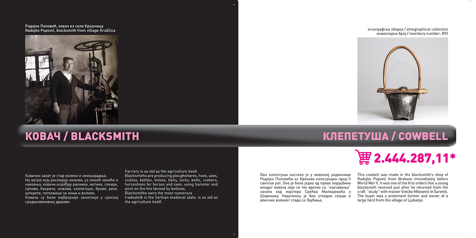 Други део експеримента смештен је у музејску продавницу реплика производа старих заната и занимања и сувенира. У класичном продајном амбијенту изложено је осам класичних белих музејских витрина на које су посављене стаклене кутије. У њима се налази осам предмета из етнографске збирке музеја. Предмете прати легенда која га смешта у историјски контекст заната или занимања персонализован фотографијом произвођача, биографија самог предмета и истакнут инвентарни број. Додатак који „смета“, или се пак, у зависности од угла посматрања, сасвим природно уклапа у амбијент музејске продавнице, јесте истакнута хиперболисана тржишна вредност музејског предмета оличена у готово надреалној цени. Како је она далеко већа од сличних или истих предмета који се могу купити и у самој продавници, чак астрономска, отвара се питање вредности и цене: да ли вредност кореспондира са ценом? Да ли историјат предмета игра улогу у одређивању вредности? Да ли присуство биографије предмета подиже вредност и како може утицати на цену? Да ли колективно и институционализовано наслеђе процењиво или непроцењиво?