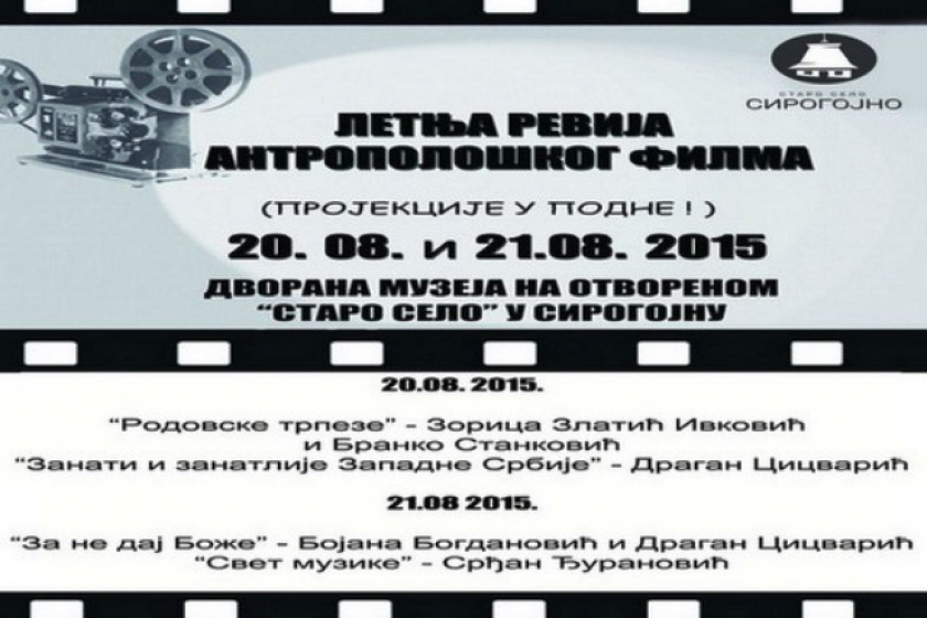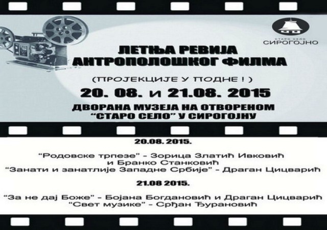 На осмој ревији етнолошког и антрополошког филма у Музеју на отвореном „Старо село“ у Сирогојну 20. и 21. августа 2015. године биће приказани филмови у продукцији Музеја на отвореном „Старо село“ у Сирогојну.