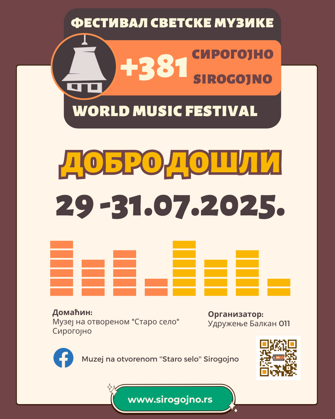 У јединственом амбијенту Златибора, међу дрвеним кућама и мирисом планине, фестивал Светске музике +381 Сирогојно по шести пут претвара Музеј на отвореном „Старо село“ Сирогојно у раскршће звукова света. Од 29. до 31. јула, љубитеље музике очекује три дана врхунских концерата, емоција и сусрета са традицијом у новом, живом руху.