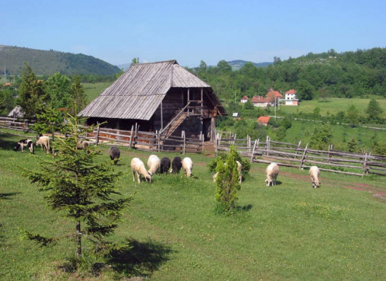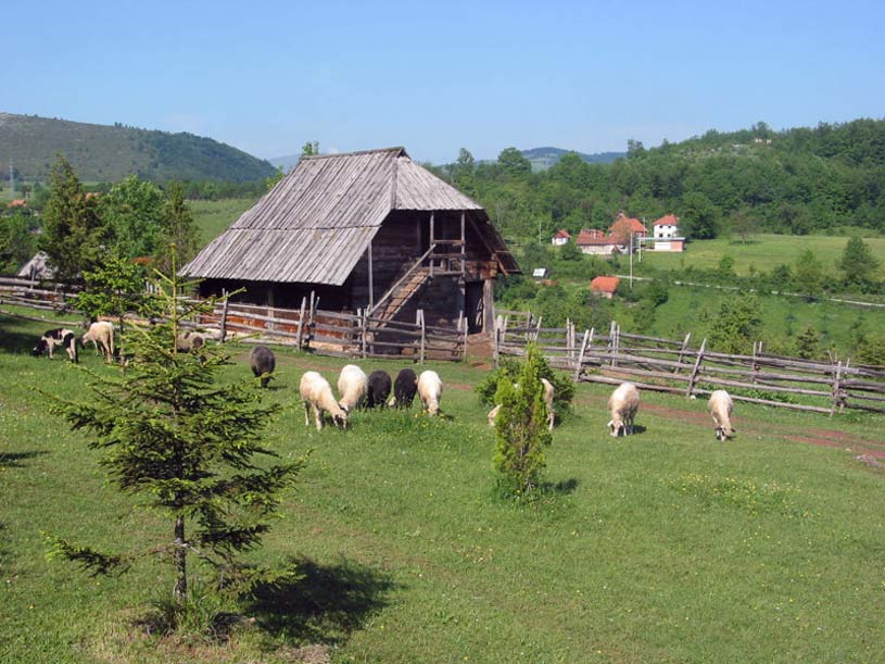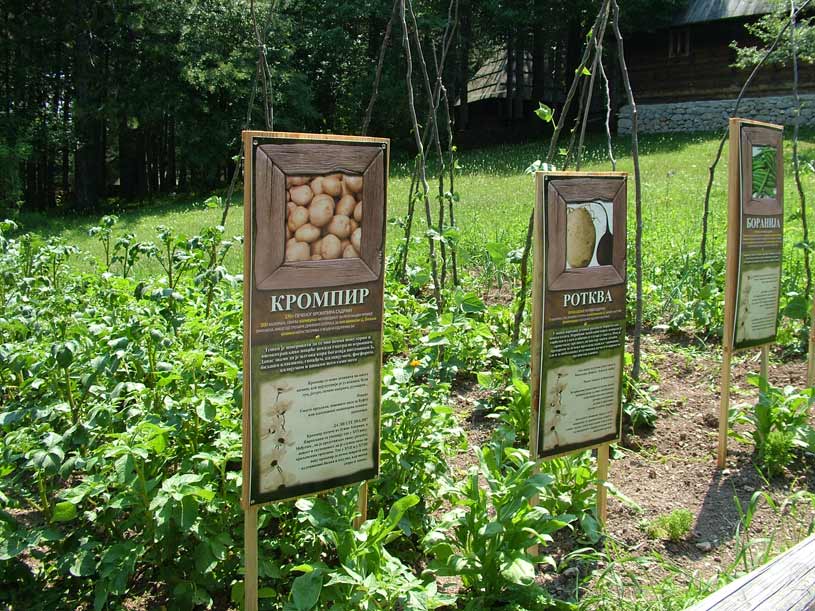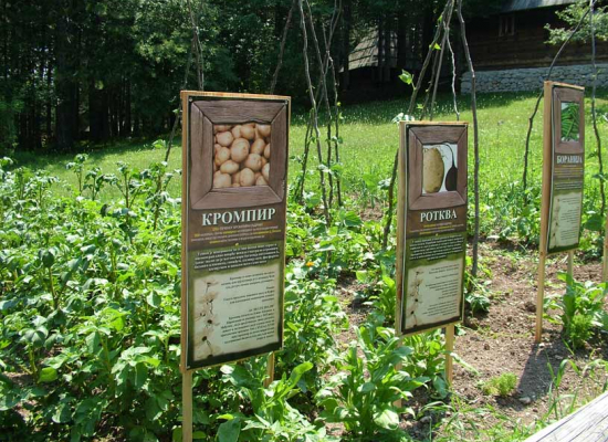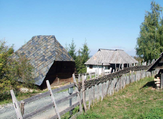 The economic part is built separately from the households. It has a cooperage, a shed for drying plumbs, a stable and a pig barn with pigsty.