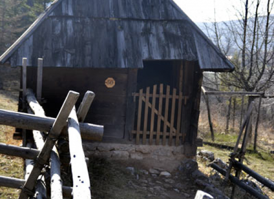 Stable is a larger building, often with two levels: the ground floor was used for large domestic animals (cattle and horses), while sheep were kept in the loft which was accessed by the ramp on the front.