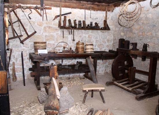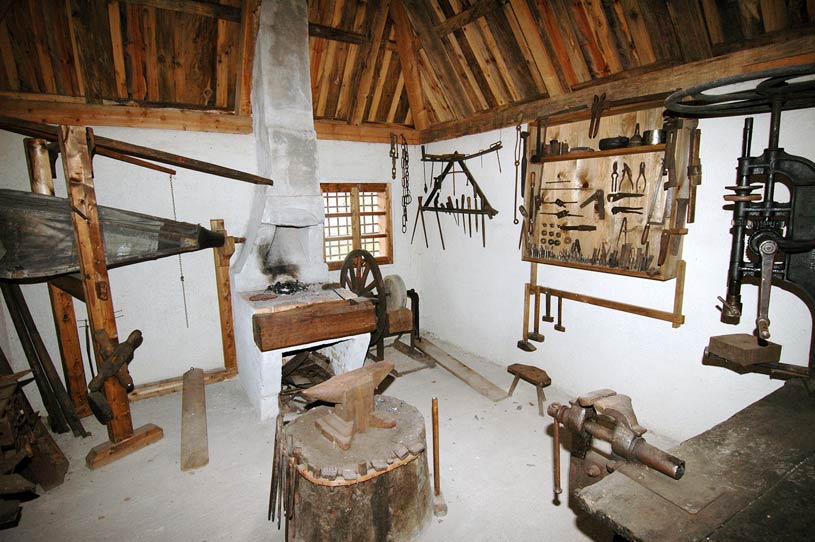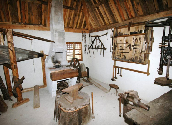 The gifted individuals of Zlatibor villages were engaged in various trades and crafts to satisfy their basic needs. Since the entire area is rich in various types of wood (pine, fir, spruce, oak, beech, ash, maple, elm, birch, hazel), its application was diversified. Skilled builders constructed wooden dwelling places as well as supporting economy facilities. The largest part of the household utilities – dishes for preparing and storage of food, agricultural tools, means for transportation of goods and people were made by carpenters and woodcarvers, coopers, carters, basket weavers and water-bottle makers. The crafts dealing with processing of clay, textile, leather and metal were developed: pottery, tailoring (terziluk, abadžiluk), making traditional footwear (opanci), blacksmithing, and also transport and goods selling (kiridžiluk, rabadžiluk), as well as production of tar, burning pinewood splinter and lime.