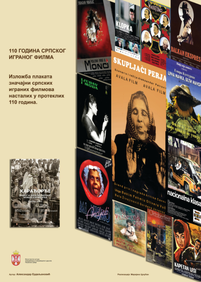 Изложба филмских плаката „Сто година српског играног филма“ обухвата период од 1911. године и плаката за први српски и балкански играни филм „Живот и дела бесмртног вожда Карађорђа“ Чича Илије Станојевића, до плаката за филмове новијег периода – „Монтевидео Бог те видео“ Драгана Бјелогрлића и „Јужни ветар“ Милоша Аврамовића из 2018. године. Следећи хронолошки редослед избора од 25 плаката пролазимо кроз век српског играног филма, присећајући се сјајних филмова које смо гледали и које још увек радо гледамо. Истовремено, можемо да пратимо и како се временом развијао и графички приступ израде филмског плаката.