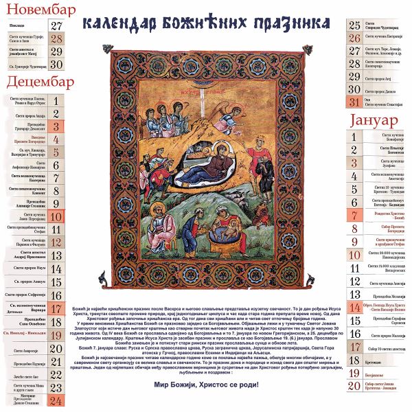 Изложба Христос се роди! Заиста се роди! представља водич кроз календар божићних празника са значајним подацима о њиховом пореклу, хронологији, народним обичајима и религијским схатањима. Божић је један од највећих хришћанских празника и његова прослава представља изузетну свечаност. Циклус божићних празника обилује мноштвом радњи и обреда са жељом да се обезбеди срећа и напредак првенствено породице и домаћинства, али и добра летина и здравље стоке и живине.