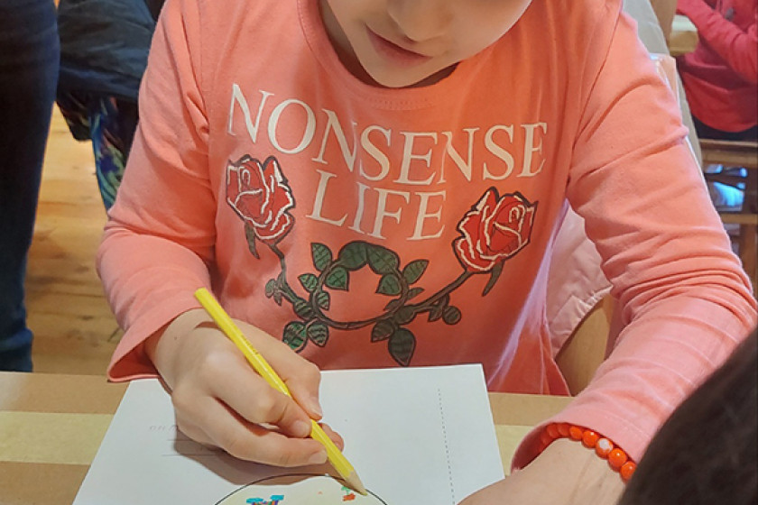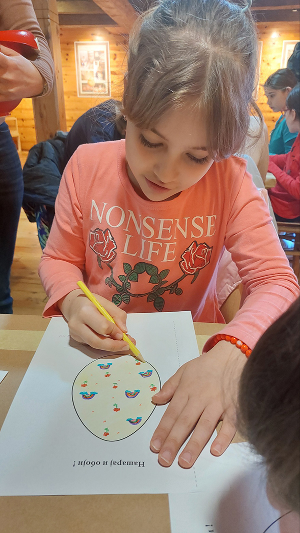 У исто време у Кући на огњишту, домаћица је приказала традиционалан начин шарања биљкама и бојења јаја у луковини, како би добила црвену боју. Заинтересовани посетиоци су могли да се подсете обичаја и значаја овог великог празника.