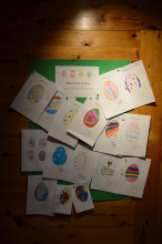 На Радионици,,Празник шарених јаја", која је одржана данас у Дворани Музеја, учествовала су деца из Вртића Пахуљица Сирогојно, ОШ Сава Јовановић Сирогојно и Ужица. Деца су прво на папиру цртала своје васкршње јаје и покушавала да слично тако украсе и право јаје.